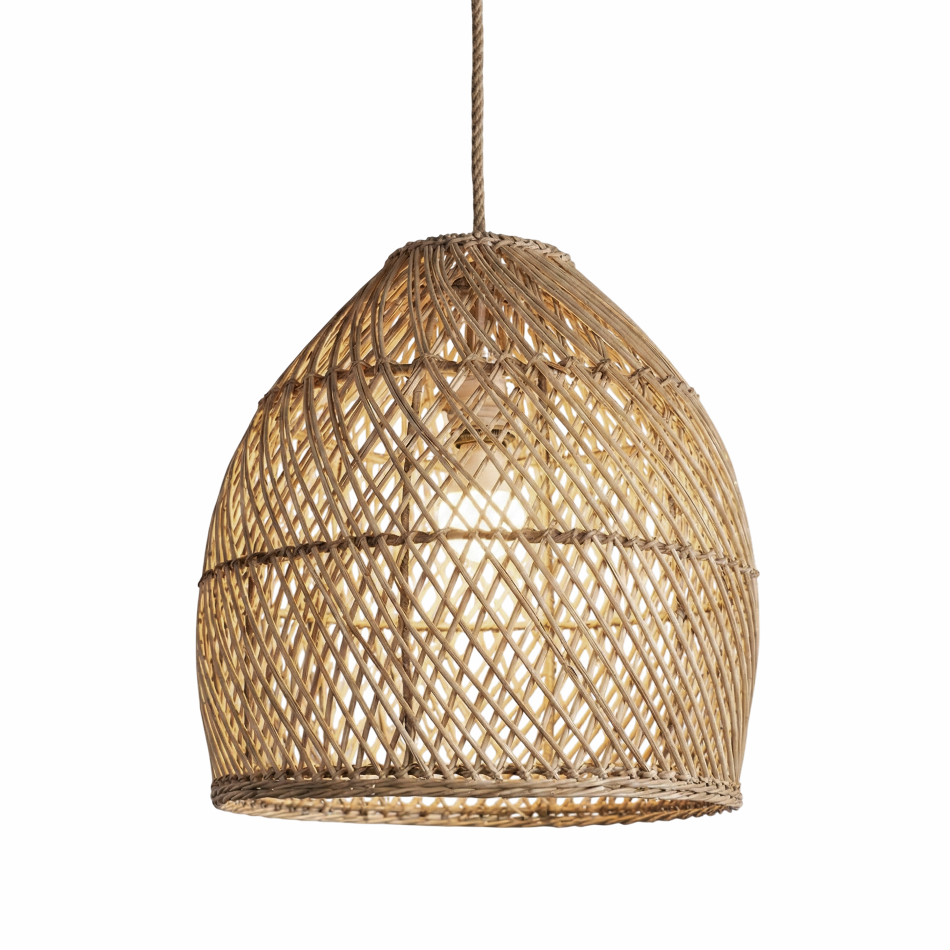Made from Malawi Rattan Cane, this 'Beehive' designer pendant lampshade has an x-weave design, which brings a 'tropical' light into any room.